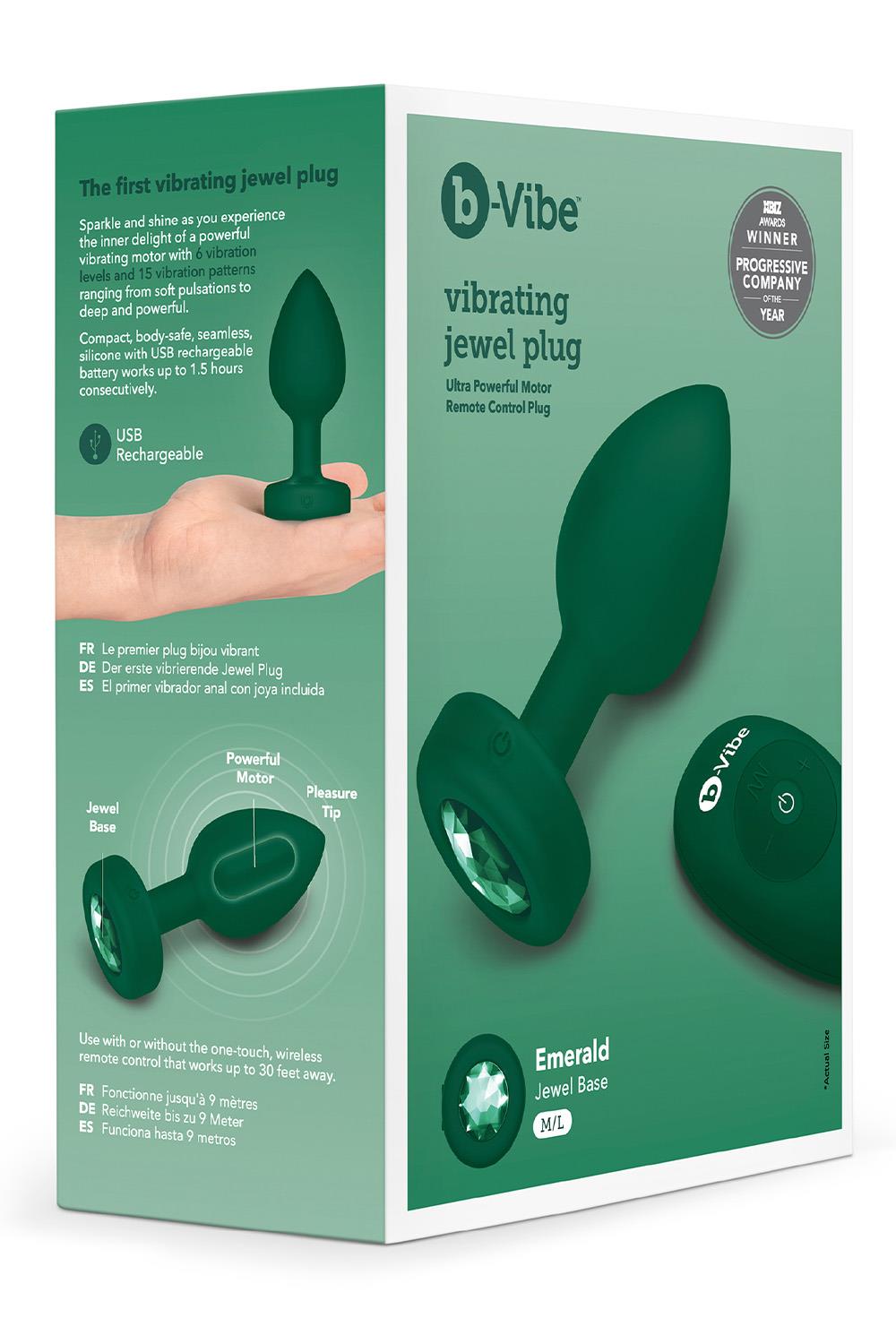 b-Vibe Vibrating Jewel Plug M/L - ultra powerful motor remote control plug