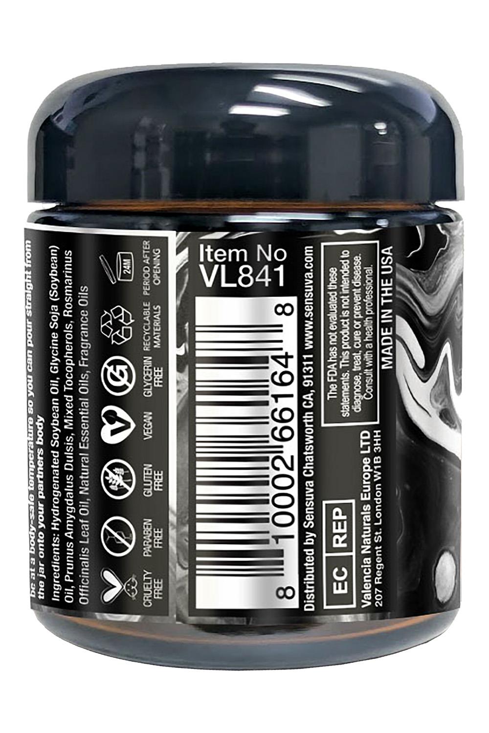 Directions for use: Trim wick to ¼” prior to lighting. Once wax has melted down to a sufficient pool, blow out flame Oil will be at a body-safe temperature so you can pour straight from the jar onto your partners body.