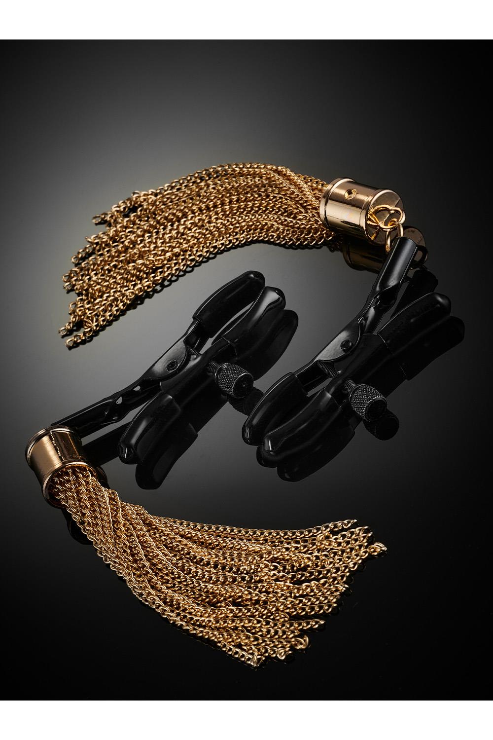 Draped Desire Clamps – Adjustable Nipple Clamps with Gold-Draped Tassels