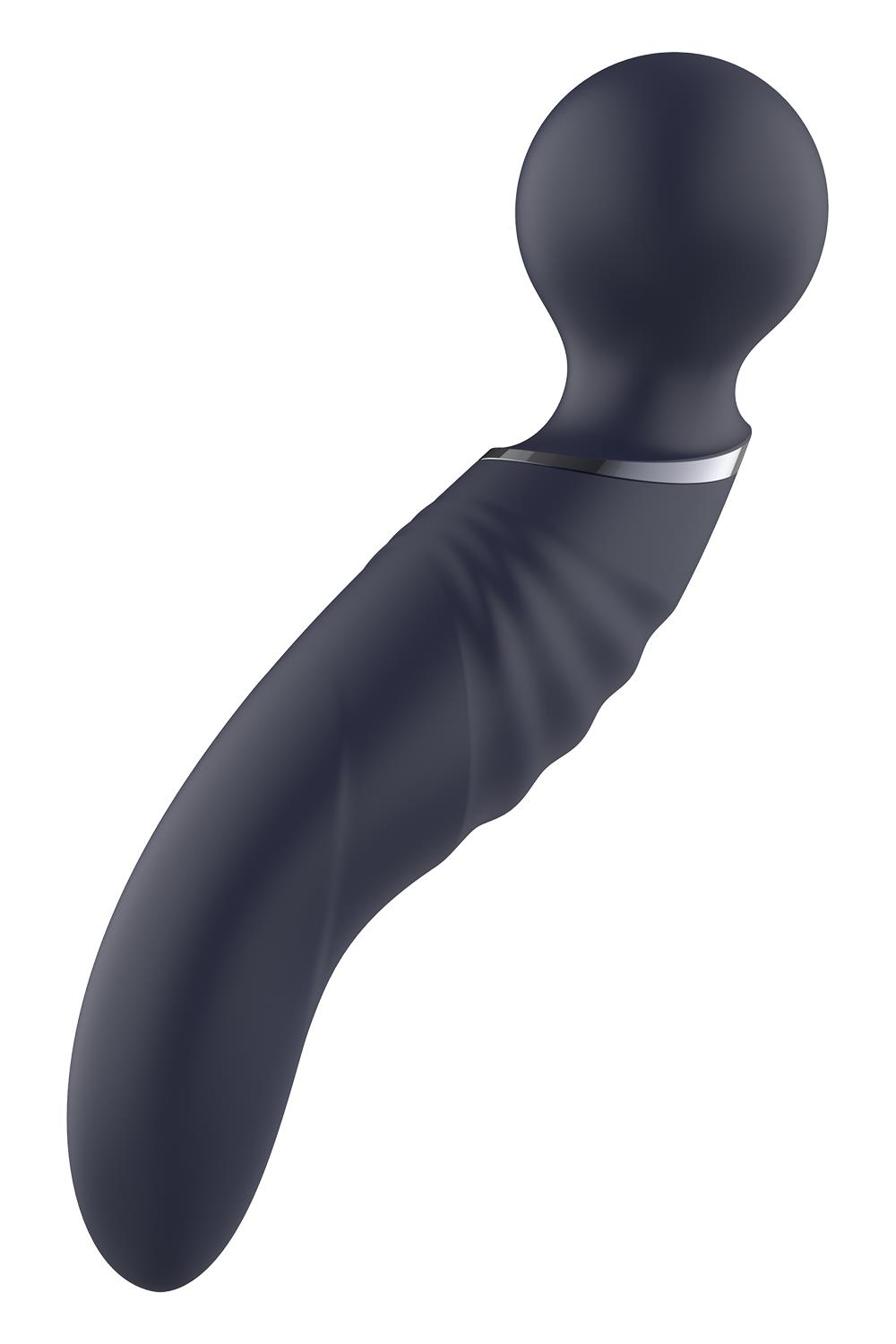 Introducing the epitome of glamour and pleasure: the magnificent Glam Dual Wand Vibe! Unleash the power of versatility with two usable ends, each designed to deliver unparalleled satisfaction. On one end, indulge in the gentle caress of the wand head, perched upon a flexible neck that bends to your desires. On the other end, explore the depths of pleasure with the curved G-spot vibrator, crafted to target your most intimate areas with precision and delight. Both sides can be adjusted independently.
