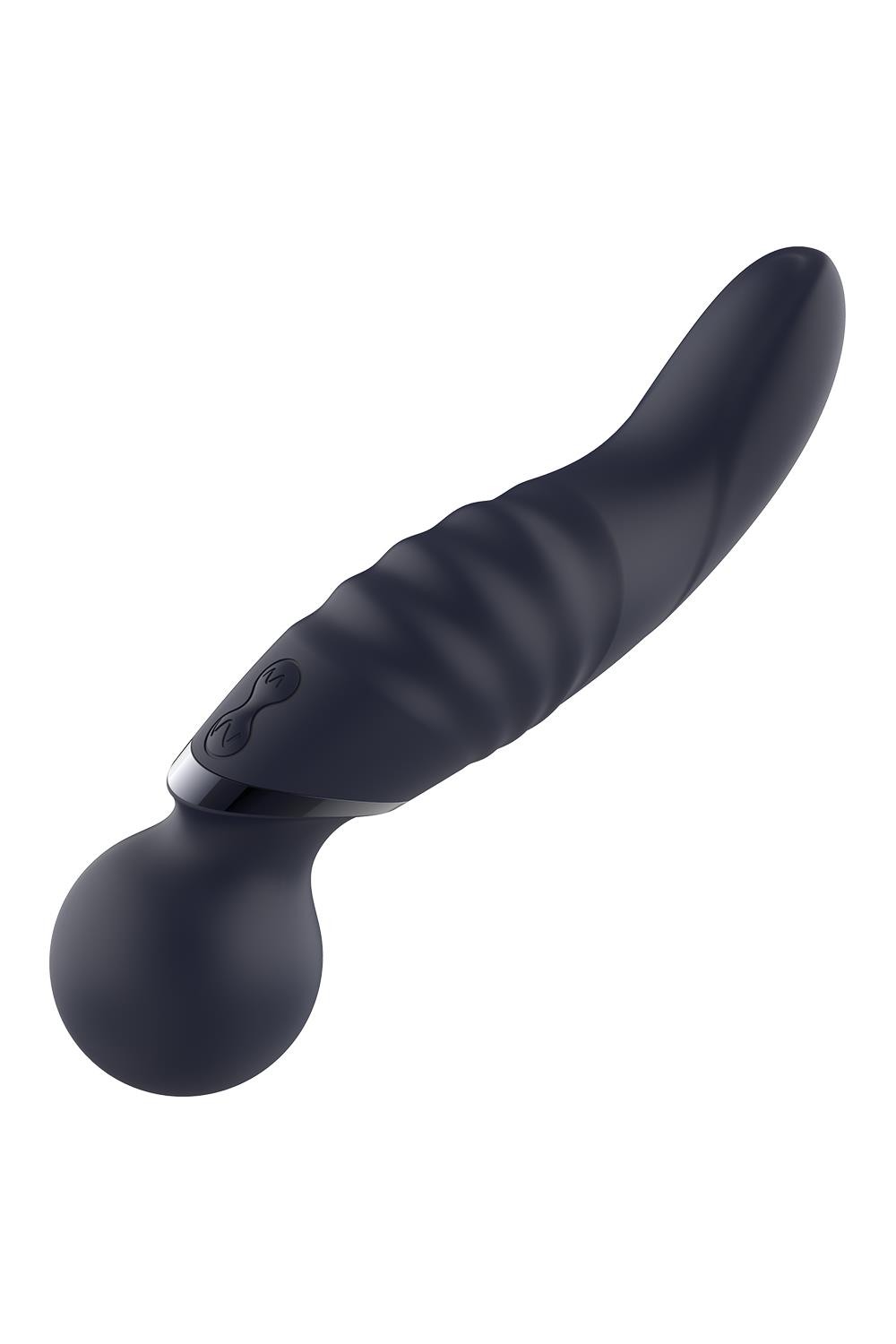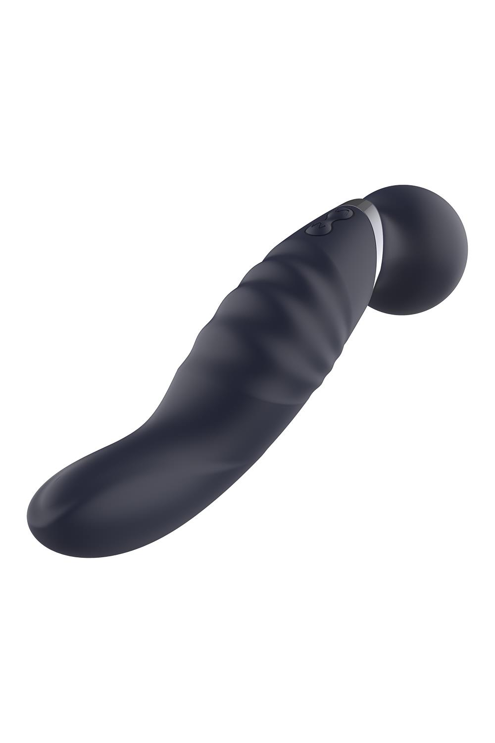 This Glam Dual Wand Vibe has 2 usable ends: the wand head on a flexible neck like all wand massagers have, and a curved G-spot vibrator on the other end. It features strong vibrations in 3 speeds an 7 rhythms, in both ends. Operation is easy with 2 separate buttons. The Glam dual wand vibrator is made of smooth and soft silicone and ABS. It has an IPX6 rating for water resistance and it’s rechargeable with the included USB cable.
